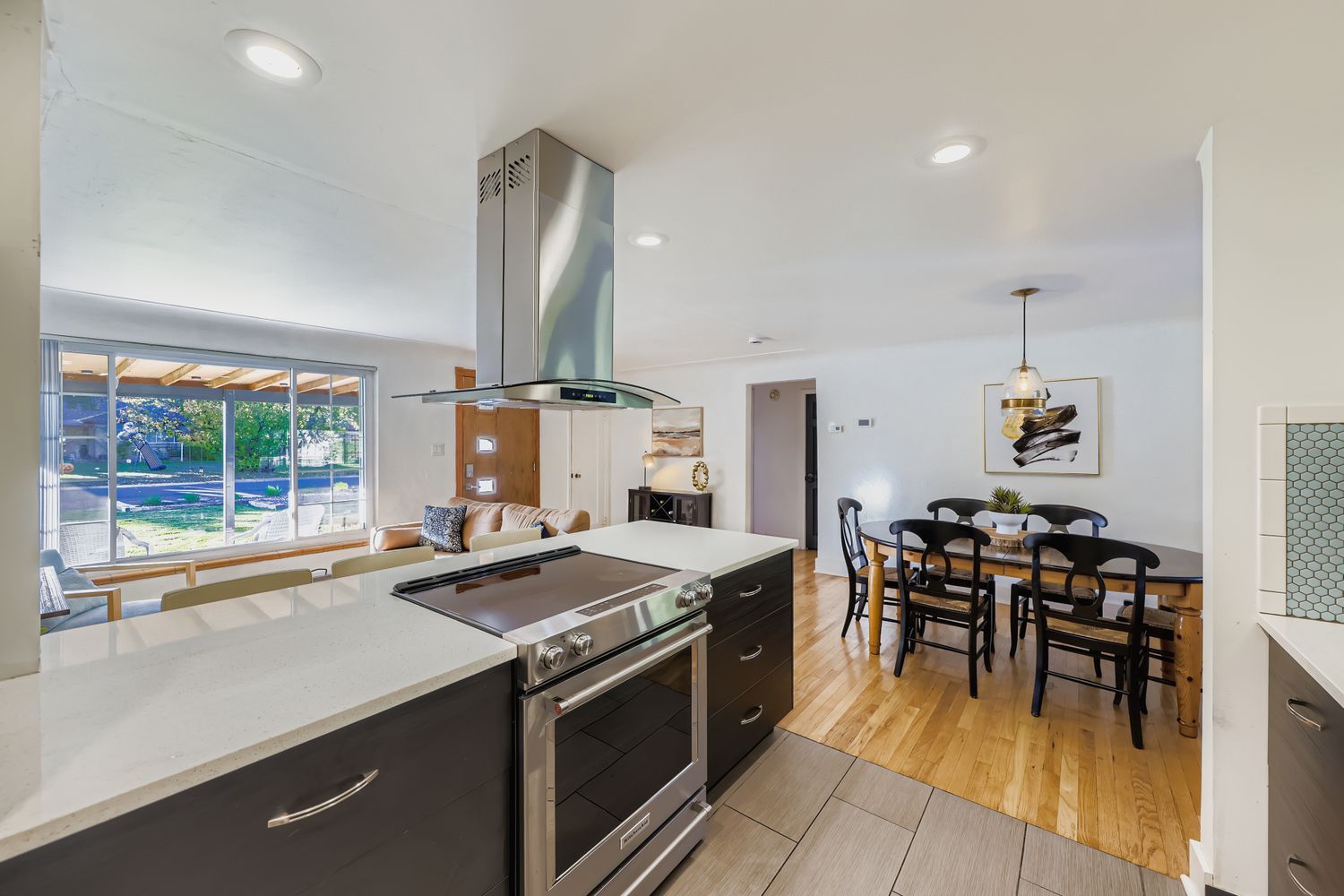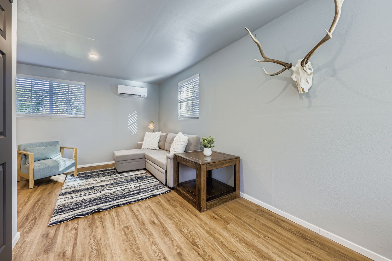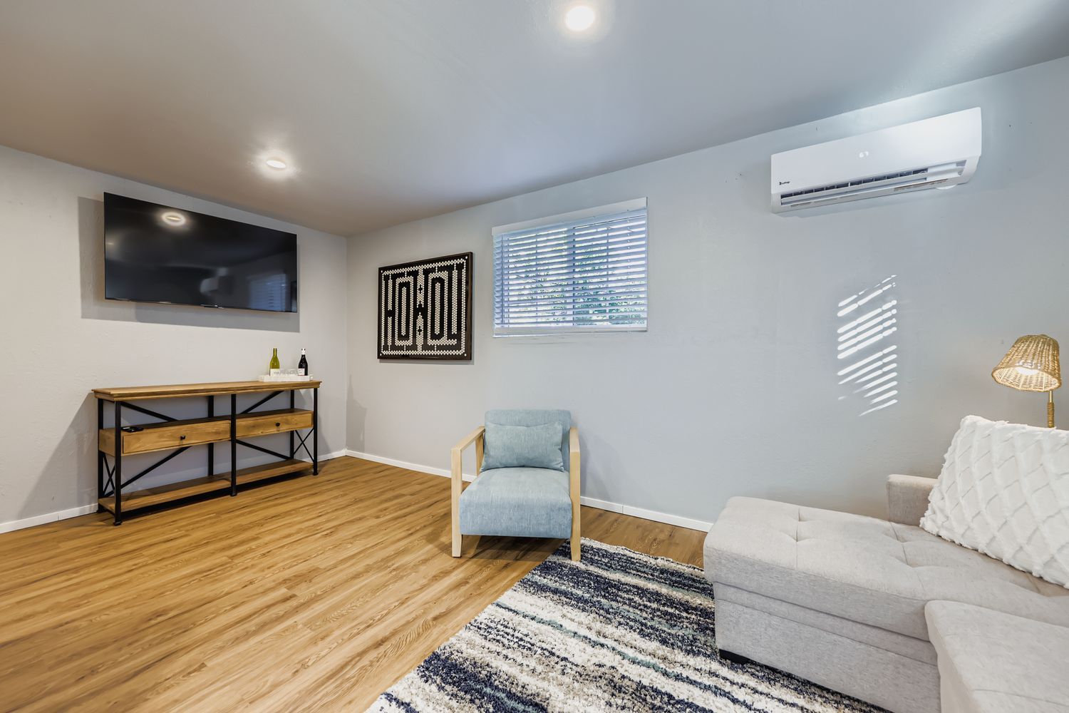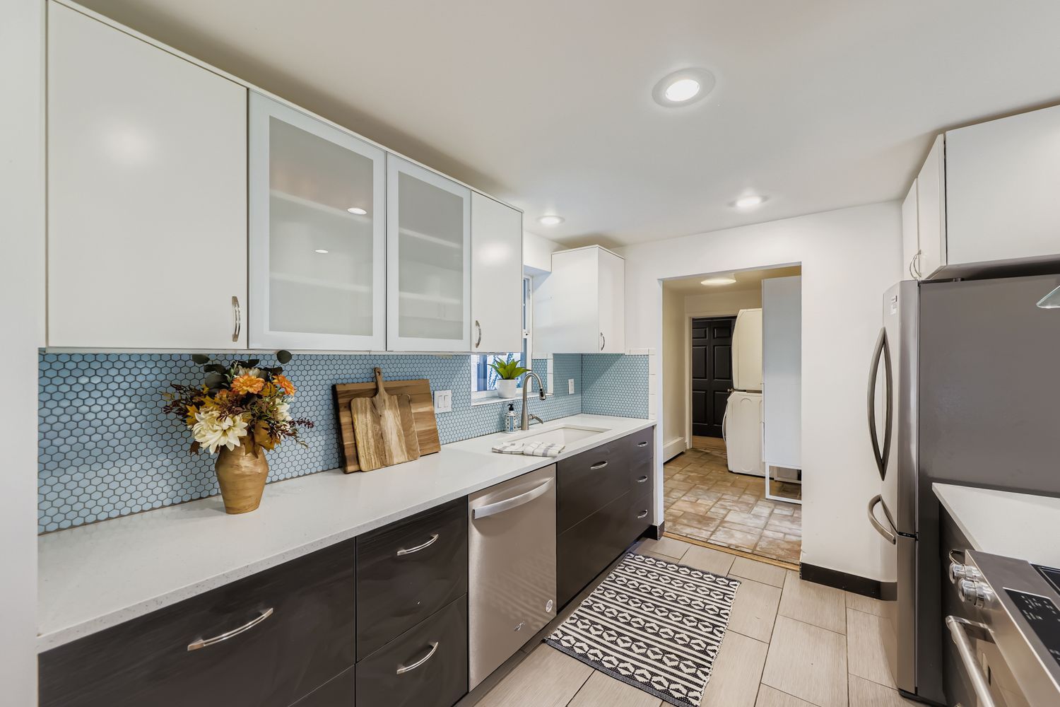 Welcome home! This is the Wheat Ridge mid-century modern ranch you've been waiting for! Fully remodeled and move-in ready, this home features an ideal layout on a spacious lot on a fantastic block. A chic living room and modern kitchen are the perfect combination for hosting or enjoying personally for relaxing evenings in. A split floor plan includes two bedrooms and a bathroom on one end of the home and a large primary suite with a brand new en-suite bathroom on the other. The recently finished bonus room, with its own mini-split HVAC system, can serve many purposes such as a guest suite, second living space, play space, office, recreation room, etc. Enjoy Denver's 300 days of sunshine in the backyard that features plenty of space for outdoor living, dining, cooking, gardening and more. Don't miss your chance to call this your new home!