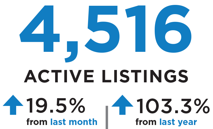 - The historical average increase in active listings from February to March is 7.6 percent. This year’s increase of 19.5 percent represents the third largest percent change month-over-month.