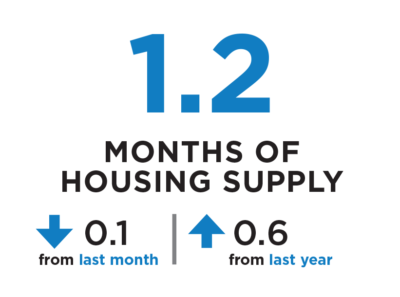 Last month, we appreciated another 1.4% - that’s on top of the 4% we appreciated in February! Why is this happening? One, we are recovering our gains that we lost at the end of last year. Two, this is a classic reflection of our cyclical market. Most appreciation happens between February and June each year. While supply is up, demand remains stronger. As a result, we currently have 1.2 months of supply and there is not enough supply to meet demand.